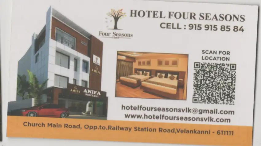 Hotel Four Seasons offers the perfect pilgrimage stay in Velankanni, located just a short walk from the Basilica of Our Lady of Good Health. Whether you are visiting the Velankanni Church for the Holy Mass or seeking a peaceful retreat near Velankanni Beach, our hotel provides the best AC and Non-AC rooms for families and solo travelers. Enjoy modern amenities, proximity to the Morning Star Church, and easy access from the Velankanni Railway Station. Experience comfort and spirituality at the best budget hotel in Velankanni.